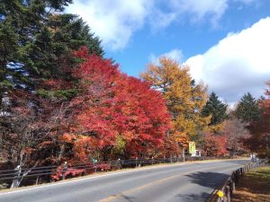 草津温泉は、いよいよ紅葉も最後の見頃でした。 西の河原露天風呂に行く途中の道も、落ち葉で一杯でした。